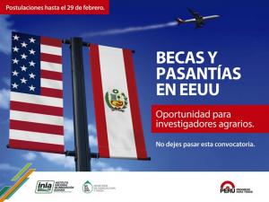 (Agraria.pe) El Instituto Nacional de Innovación Agraria (INIA) del Ministerio de Agricultura y Riego del Perú y el Servicio de Investigación Agrícola (ARS) del Departamento de Agricultura de los Estados Unidos, convocan a investigadores peruanos a postular a las becas en materia de adaptación de la