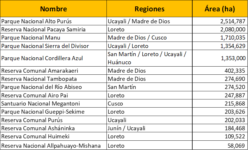 Cuadro 1: Extensión de los parques nacionales en Perú