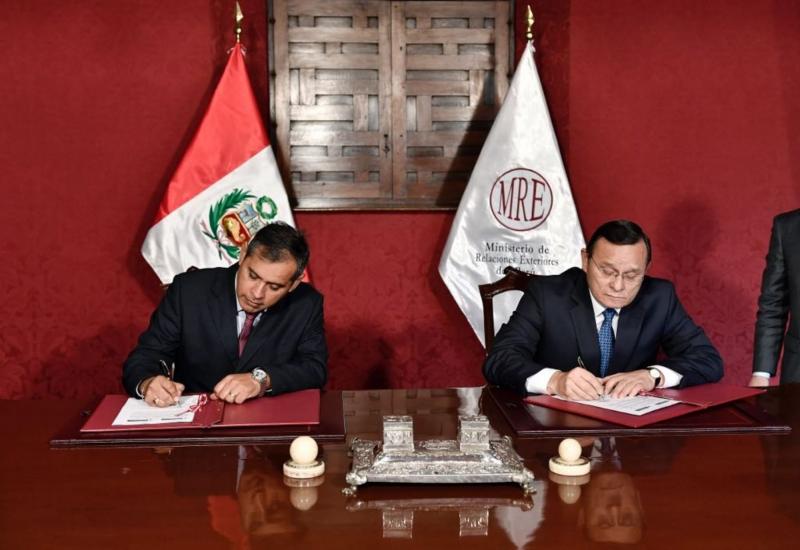 (Agraria.pe) Los ministros de Relaciones Exteriores, Néstor Popolizio, y de Agricultura y Riego, Gustavo Mostajo, suscribieron un convenio para cooperar en la promoción de la exportación de productos agropecuarios peruanos. Su objetivo es facilitar en el exterior el ingreso de dichas exportaciones y ampliar los beneficios de la apertura comercial del Perú.