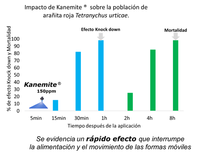 RÁPIDO efecto KNOCK DOWN sobre todos los estadios biológicos de T. urticae.