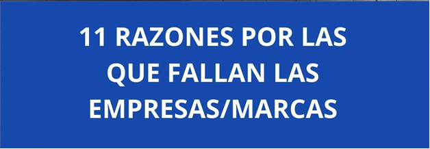 En nuestra evaluación de por qué fallan los emprendedores con sus empresas/marcas, encontramos entre las siguientes 11 razones (Para más información ver artículo de Pasha Carter, de The Vip Network, en Forbes: https://www.forbes.com/sites/forbescoachescouncil/2019/07/05/11-reasons-why-most-entrepreneurs-fail/):