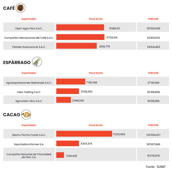 A pesar de no tener la ventaja geográfica de compartir frontera con este país, el Perú ha logrado mantener a Estados Unidos como su principal mercado gracias a su liderazgo como proveedor en productos específicos, como el arándano y la uva, que generan cifras destacadas para el sector. Además, otros productos como el espárrago, el café y el cacao, si bien enfrentan ciertas desventajas competitivas, conservan una posición sólida en esta plaza.