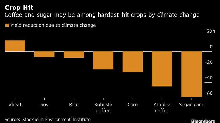 (Agraria.pe) La producción de cultivos fundamentales como el azúcar y el café podría caer hasta en un 59% a largo plazo debido al cambio climático, según un informe del Instituto de Medio Ambiente de Estocolmo, mientras que la producción de trigo podría aumentar.