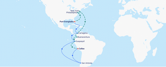 Estas conexiones amplían las oportunidades para el comercio exterior de nuestro país, donde destaca el potencial de intercambios alrededor de América en tiempos muy competitivos, así como posibles conexiones con otros mercados que tienen conexión en Cartagena.
