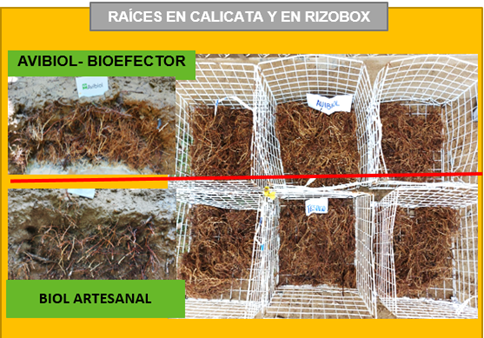 Es así como, el tratamiento Avibiol Bioefector = 150 L/Ha presentó un mejor desarrollo radicular, superando al tratamiento con biol artesanal en 63% más de peso fresco de raíces y generando mayor cantidad de raíces activas.