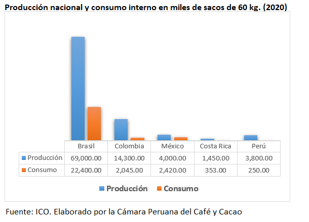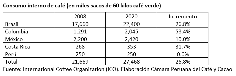 Factores como el nivel de ingresos y la política orientada a promover café en formatos de alto valor agregado pueden incidir en el incremento del consumo interno como sucedió en Brasil. Mientras que, en los demás países, los ingresos urbanos relativamente bajos y esfuerzos fragmentados y esporádicos de promover el consumo interno constituyen un factor limitante. El contexto de pandemia obliga a revisar este punto.