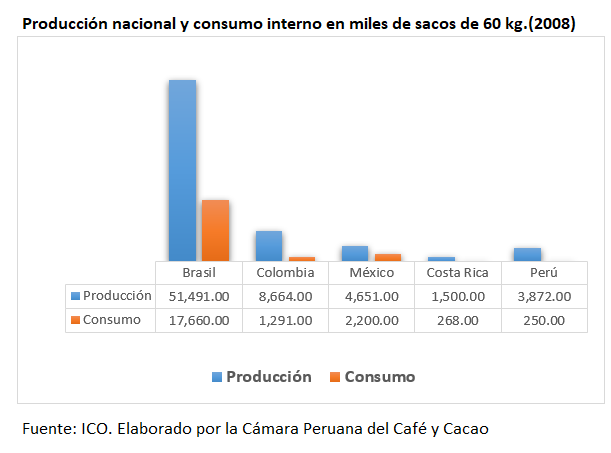 La ICO señala que es importante considerar que la producción de estos países pertenece a 3 grupos distintos. La producción de Brasil se considera en el grupo de arábicas brasileños y otros arábicas naturales, la de Colombia en el grupo de arábicas suaves colombianos, y la de México, Costa Rica y Perú en el grupo de otros arábicas suaves. En promedio, los países consumen parte de sus mejores cafés.