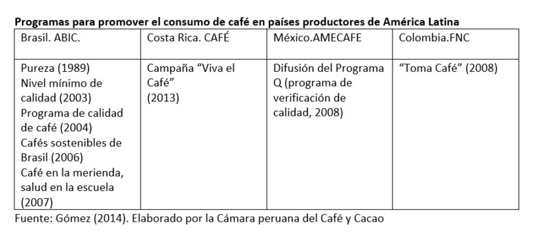 Alrededor del año 2008 Colombia, Costa Rica y México empezaron a trabajar casi simultáneamente el desarrollo de acciones encaminadas a la promoción del consumo interno de café. Brasil empezó en el año 1989, dos décadas antes que otros productores, ampliando así año a año su experiencia en estrategias de promoción del consumo. El objetivo siempre fue ampliar la ratio del consumo.