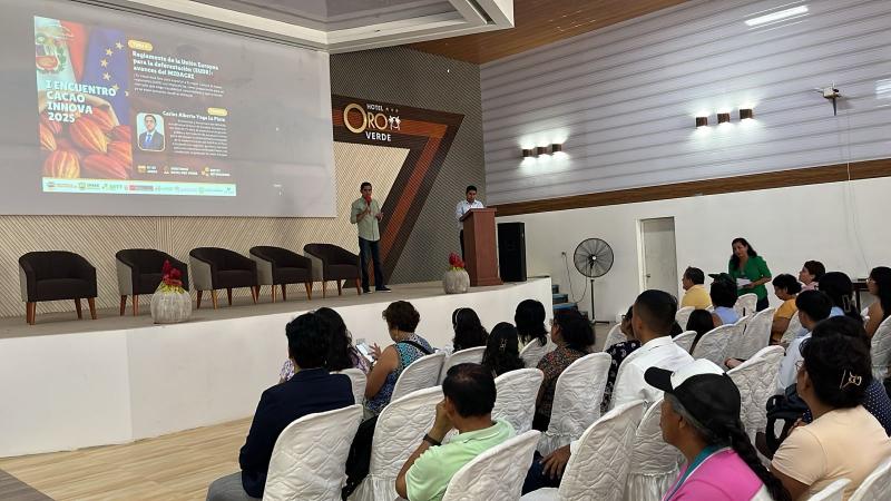 Bajo este contexto, el Midagri presentó los avances y lineamientos técnicos relacionados con la adecuación al Reglamento de la Unión Europea sobre Deforestación (EUDR). La ponencia detalló las acciones que viene impulsando el ministerio para asegurar que productos como el cacao, el café y la palma aceitera cumplan con los criterios de sostenibilidad, trazabilidad y legalidad exigidos por el mercado europeo.
