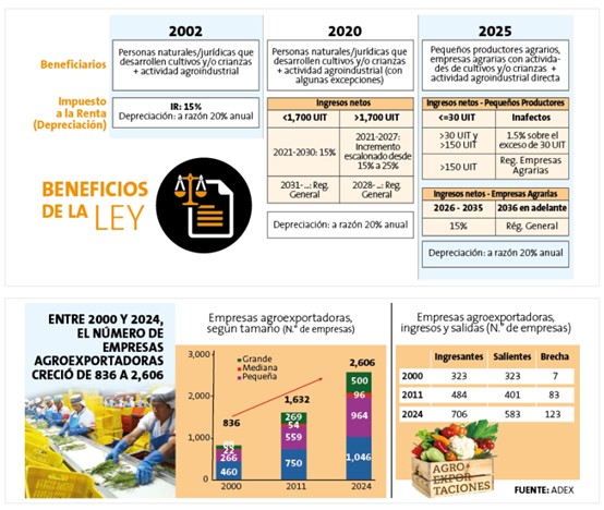 Para empezar, la autógrafa del Parlamento —que aún debe ser revisada por el Ejecutivo— no hace referencia en ninguno de los artículos al tema laboral. El presidente del Comité de Agroindustrias de la Asociación de Exportadores (ADEX), Mario Salazar, explicó que los trabajadores del sector mantendrán los mismos derechos ya obtenidos con la legislatura anterior.