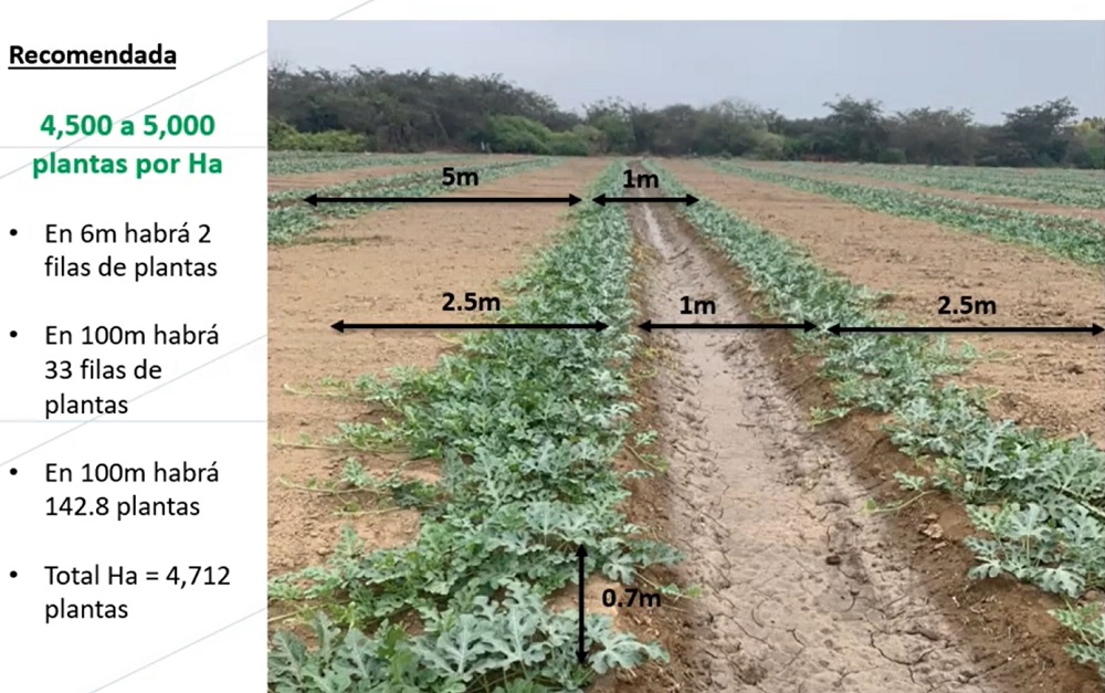 (Agraria.pe) El manejo de la densidad de siembra en sandía, es un punto clave para lograr una mayor productividad y mayores ganancias.