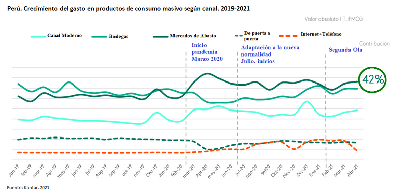 Los mercados de abasto se han convertido en el canal más importante, 42% del crecimiento del gasto en el último año provino de este canal. Los hogares de estratos medios en el país han sido los que más trasladaron su consumo aquí.