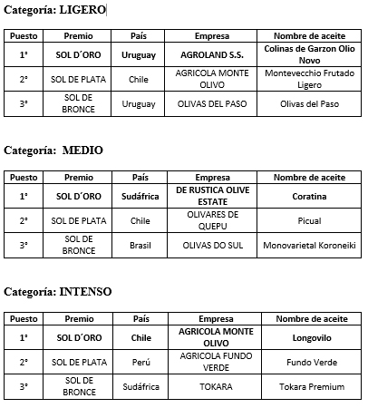 En la edición de este año, participaron a la vez productores de aceite de oliva de Australia, Sudáfrica, Uruguay, Chile, Argentina, Brasil y Perú. Asimismo, se llegó a las 73 muestras.