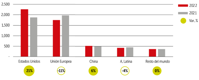 En esta variable, no obstante, las grandes empresas mostraron menos dinamismo que el resto de la industria. Las 50 mayores exportadoras sumaron un valor enviado de US$ 3.250 millones, un alza de 7% en relación a lo realizado en 2021. No obstante, el resto de la industria sumó US$ 1.296 millones, un alza de 16%. Con esto, el total de toda la industria llegó a US$ 4.546 millones de exportaciones de fruta fresca, un alza de 9%.