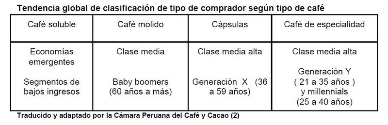 El consumidor crea una fuerza en el mercado que impulsa la venta de diferentes tipos de café. Por esta razón, se ha vuelto necesario identificar cuáles son los tipos de compradores. La tendencia a la segmentación por el nivel de ingresos y edad se ha vuelto popular en la industria mundial.