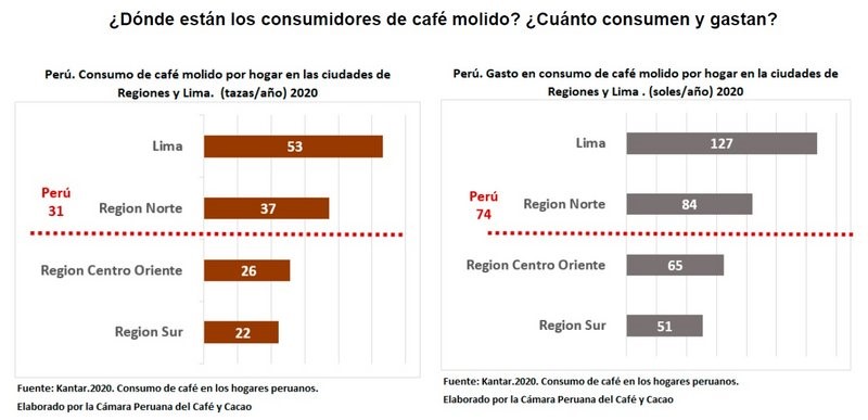 En Lima y en la región norte hay una oferta más amplia de café molido en el mercado. Por ello, los miembros de familia que realizan las compras tienen más oportunidades de llevar el producto a casa. Están más expuestos ya que hay más cafeterías y tostadurías; además de que la cercanía a zonas productoras permite un abastecimiento continuo.