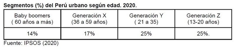 Las tendencias globales de segmentación por nivel socioeconómico y edad aplican al contexto nacional. IPSOS (2020) recomienda conocerlos para elaborar estrategias de venta efectivas en el contexto actual.