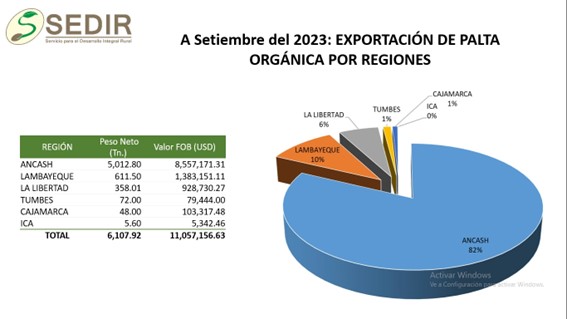 Según información de Adex Data Trade, procesados por el Servicio para el Desarrollo Integral Rural (SEDIR), la región Lambayeque es la segunda exportadora de palta orgánica con 611 toneladas, le sigue La Libertad con 358, Tumbes con 72, Cajamarca con 48 e Ica con 5 toneladas.