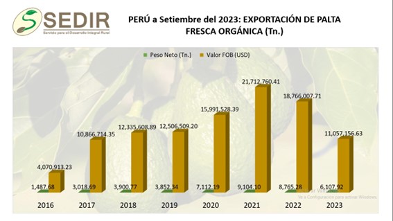 “Pese a la caída de la exportación de palta orgánica a nivel nacional, respecto al año pasado, los productores de nuestra región todavía apuestan por ese tipo de cultivo debido a que les genera mayores ingresos y que su consumo está en crecimiento”, explicó Juan Cerna Espinoza, director ejecutivo de SEDIR, institución que capacita y brinda soporte a pequeños productores.