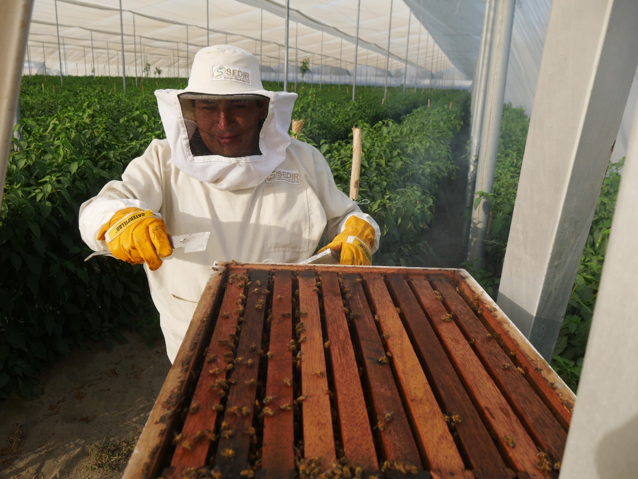 El Servicio para el Desarrollo Integral Rural (Sedir) realiza trabajo de alimentación y prevención de enfermedades en las abejas cuya polinización ayuda a que el producto alcance un tamaño óptimo para la exportación. “Aquí se aplica una agroecología moderna y amigable con la polinización de abejas y la implementación del invernadero. Hacemos un mantenimiento a las colmenas para que las abejas desarrollen un excelente trabajo. Se trata de una buena experiencia y esperemos se repita con otros productores”, remarca Liberato Torre Albino, apicultor de Sedir.