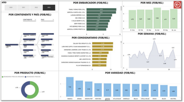 (Agraria.pe) Los datos publicados por Qeneto S.A.C y el servicio de aduanas peruano sitúan al arándano OZblu® Mágica en el primer puesto de la clasificación por alcanzar el mejor precio en la campaña 2023, con US$ 7.64 por kilogamo FOB.