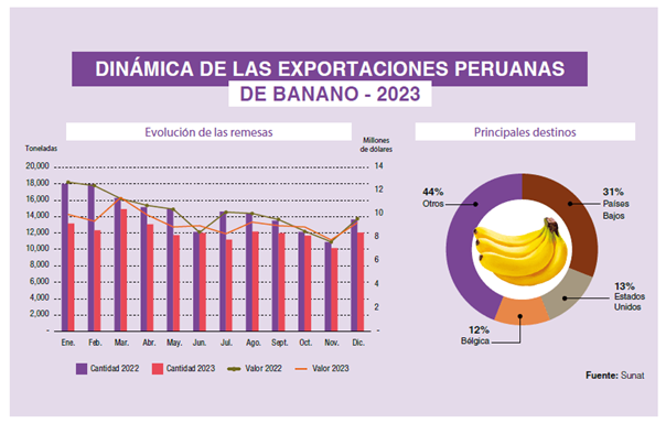 En Perú, los bajos precios obtenidos en los últimos años (desde antes de la pandemia el producto enfrenta un bajo dinamismo) mermaron la rentabilidad de los productores llevándolos a muchos a un punto de subsistencia a fines del 2022. Por ello, al año siguiente se esperaba que la inversión en el cultivo se detuviera, especialmente en la región Piura, que es la principal productora de banano en el Perú.