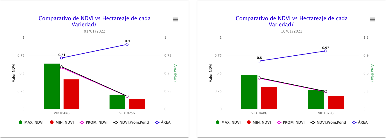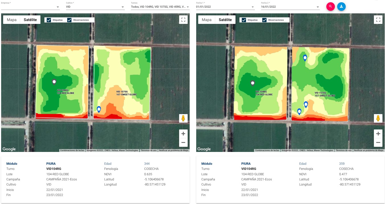 "Estamos logrando la curva de crecimiento óptimo correlacionándolo con la curva de índice de vigor (NDVI), esto nos permitirá ayudar a las empresas a identificar zonas por debajo de la curva estándar dónde haya necesidades de acción para recuperar la plantación y las condiciones de suelo", añadió.