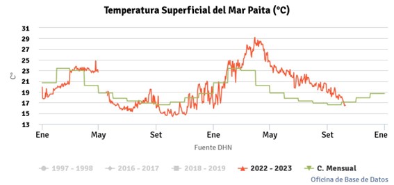 “La temperatura del mar 2023 (en Paita, Piura) ya muestra valores por debajo de lo normal. No fue igual en 1997 [aludiendo al pasado Fenómeno de El Niño]. El anticiclón es un actor relevante en este proceso”, explicó.
