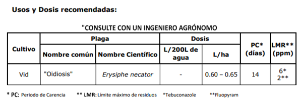 Este fungicida ha sido formulado con dos ingredientes activos complementarios: Fluopyram y Tebuconazole, una combinación que permite brindar un control más eficaz de las enfermedades.