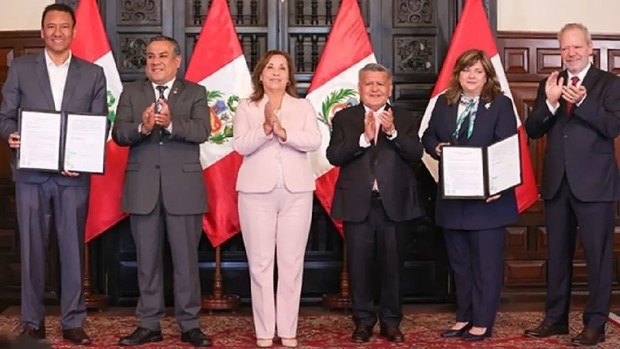 Además, la presidenta Dina Boluarte agradeció al gobernador regional de La Libertad, César Acuña, por la constante coordinación para lograr la firma del contrato, así como a las buenas relaciones diplomáticas con Canadá.