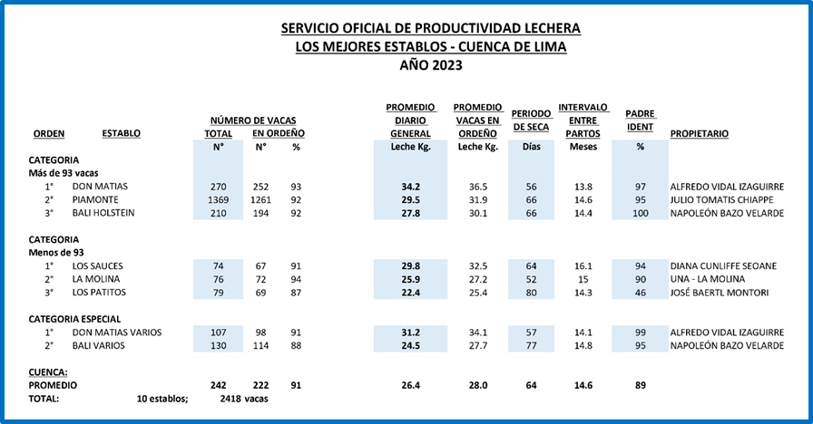 . Si desea conocer los resultados completos, puede revisar el boletín de productividad lechera del 2023 en el siguiente link: https://drive.google.com/file/d/1LaufvLQfMnY2CnS85Jg34Qg3D4CAJ_a8/view?usp=sharing