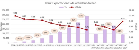 El panorama, sin embargo, como se ha venido reseñando en otras informaciones, ha logrado un aspecto positivo: “La menor oferta generó un rebote importante en los precios del arándano, comparados con los precios que, en los ultimos años venían decreciendo”, complementó.