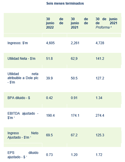 (Agraria.pe) Dole plc publicó sus resultados financieros del segundo trimestre (abril-junio) y del primer semestre (enero-junio) del 2022.