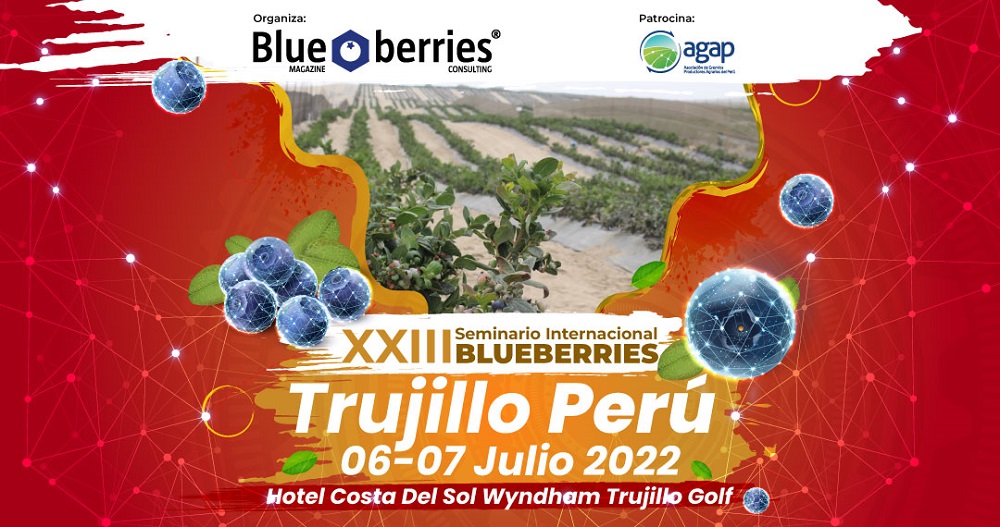 El XXIII Seminario Internacional de Blueberries Trujillo Perú 2022 se realizará este 6 y 7 de julio en el Hotel Costa del Sol Wyndham Trujillo Golf. Revisa el programa y compra tu entrada aquí. Para más información escribe a contacto@blueberriesconsulting.com o al Whatsapp +56 9 82537227.
