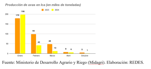“En los últimos seis años, la uva se había consolidado como uno de los dos productos insignia para la agroexportación nacional. De hecho, en 2023, solo los envíos al extranjero de uva de todas las regiones generaron más de US$ 1.700 millones, superando a cualquier otro producto agrícola. De este modo, se demuestra la gran importancia de esta fruta para nuestro país, especialmente para Ica, que concentra casi US$ 1,000 millones de los ingresos”, señaló César García, economista de la Red de Estudios para el Desarrollo (REDES).