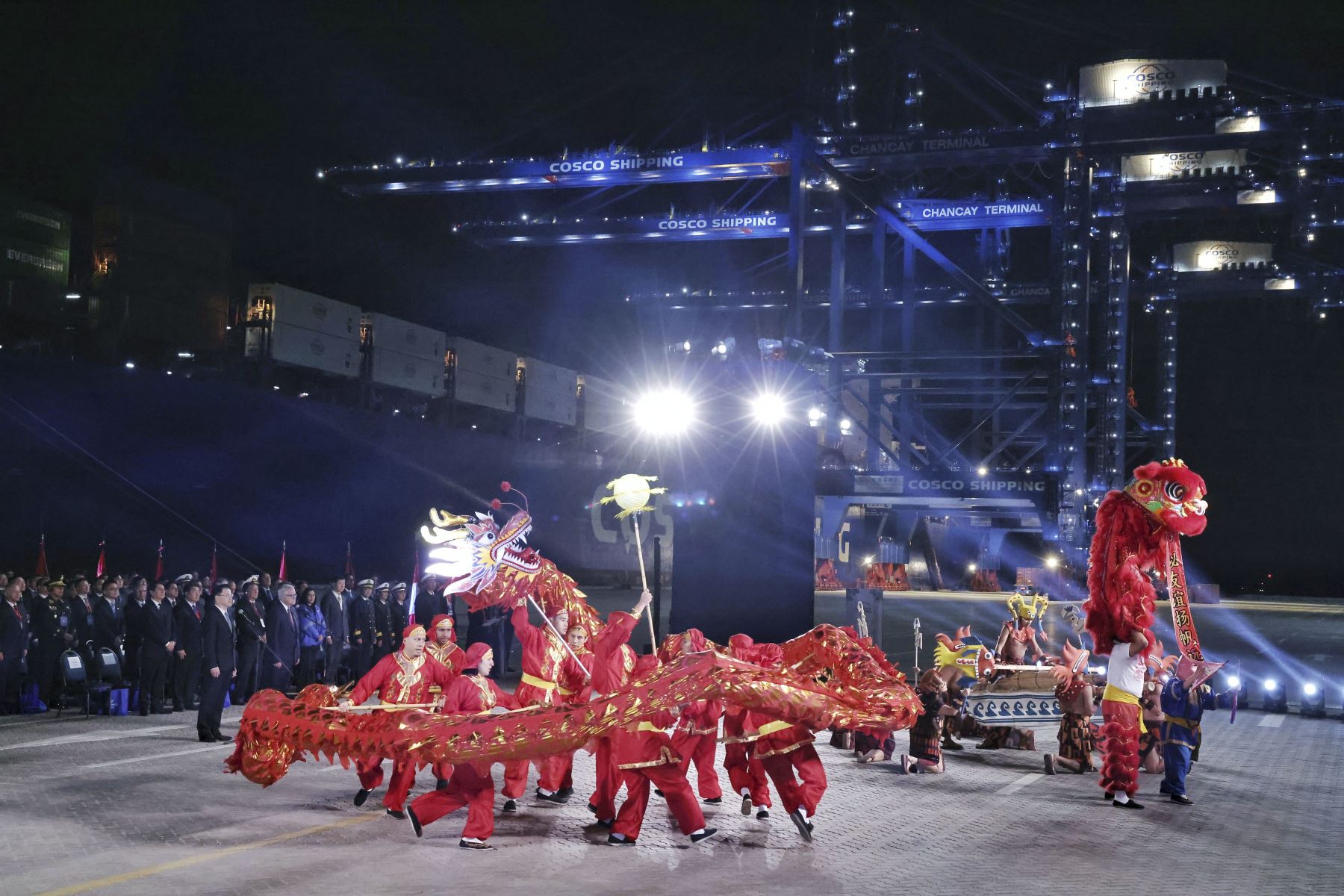 Posteriormente se realizó el traslado de un contenedor mediante las modernas maquinarias, dando por inaugurado así el puerto de Chancay. Una danza tradicional china selló el momento histórico que une a dos naciones mediante una nueva ruta comercial.