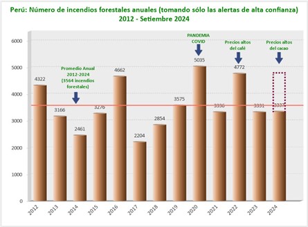 Fuente: Global Forest Watch, Historial de alertas de incendios en Perú, 2012 – Sept.2024. Elaboración: RECURSOS