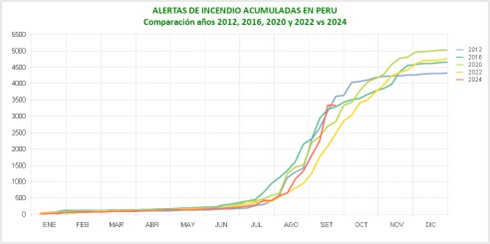 GRAFICO 2: ALERTAS DE INCENDIO ACUMULADAS EN PERU 2024 vs 2012,2016,2020 y 2022
