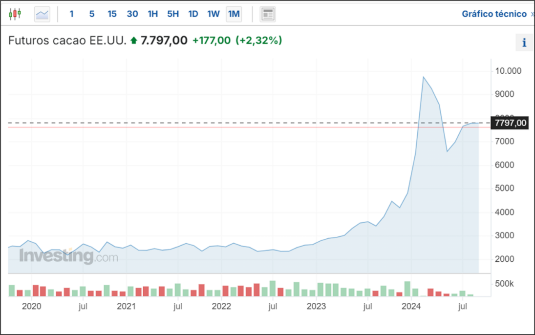 Tomado de Investing.com https://es.investing.com/commodities/us-cocoa