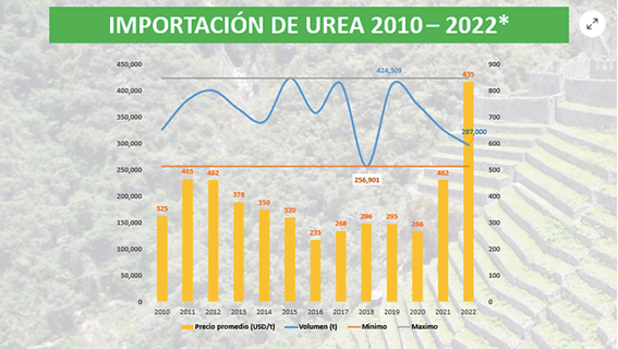 De acuerdo al portal Agrodata Perú, en 2022 Perú importó 15 millones de kilos de urea, cuyo precio pasó de los U$ 0,266/kilo en 2020 a U$ 0,462/kilo en 2021 y a U$ 0,766 en 2022. En 2022 se importaron U$ 254 millones con un incremento del 68% frente a 2021. Con el emprendimiento de la planta en Bayóvar, el país ahorrará divisas y se volverá menos dependiente de este producto.