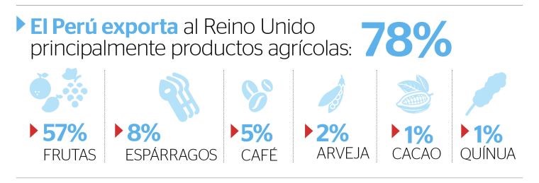 Agregó que con la implementación del acuerdo se asegura que el flujo de ambas partes se efectúe bajo las mismas condiciones que se venían dando cuando el Reino Unido formaba parte de la Unión Europea y, particularmente, en beneficio de los exportadores peruanos. “El 95% de los productos peruanos que ya venían ingresando con preferencias bajo este esquema continuarán haciéndolo, pero ahora con el esquema del acuerdo bilateral”, precisó.