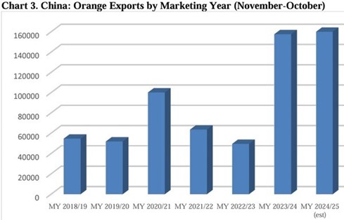 . Si desea ver el informe del USDA siga el enlace: https://apps.fas.usda.gov/newgainapi/api/Report/DownloadReportByFileName?fileName=Citrus%20Annual_Guangzhou%20ATO_China%20-%20People%27s%20Republic%20of_CH2024-0176.pdf