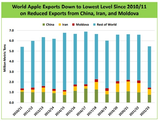 (Agraria.pe) Se proyecta que la producción mundial de manzanas frescas en la campaña 2022/2023 registre un descenso de 4.3 millones de toneladas métricas, debido a las pérdidas en China, según reporta en su informe de análisis de mercado del Servicio Exterior de Agricultura del Departamento de Agricultura de Estados Unidos (USDA), de este 13 de junio de 2023.