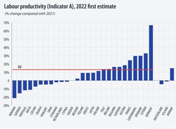 Aumento de la productividad de la mano de obra en la UE, impulsada por el fuerte incremento de los precios agrícolas