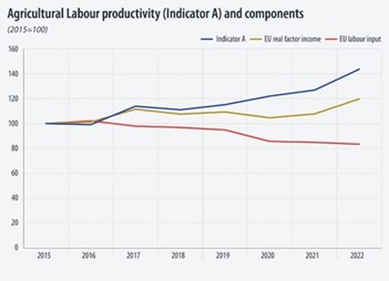Productividad de la mano de obra agrícola en el conjunto de la UE en 2022 es más de un 40% mayor que en 2015