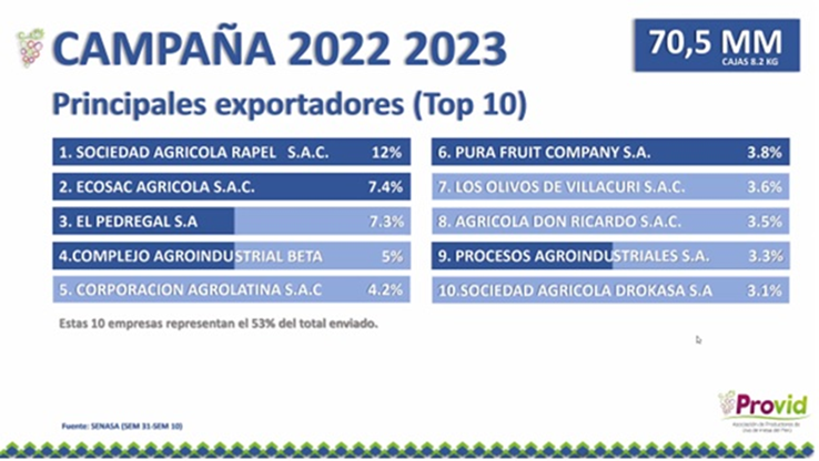 Estas 10 empresas representan el 53% de total de los envíos de uva de mesa.