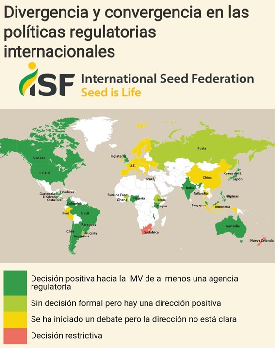 Segundo, continúan la adopción de normativa y productos modernos relacionados a nuevas técnicas de mejora genética. A finales del 2024 hicimos un resumen sobre el estado del arte en este tema. Lo sorprendente es la adopción de normativa y nuevos productos en Latinoamérica, Argentina, Brasil, Chile, Colombia, Honduras, Guatemala, Paraguay, Ecuador y Costa Rica, con aproximadamente 200 determinaciones hechas en los sistemas regulatorios como productos agrícolas equivalentes a convencionales principalmente en Argentina, Chile, Brasil y Colombia. En 2024 Costa Rica consolidó su norma de edición de genomas y mostró mejoras en el sistema regulatorio de OVMs. Uruguay logró claridad en el proceso mediante el decreto 84/24 y posteriormente logró consolidar los procedimientos para los productos de la edición génica. Latinoamérica es una región que se vislumbra con un gran actor en la adopción de nuevas tecnologías de mejoramiento de cultivos.