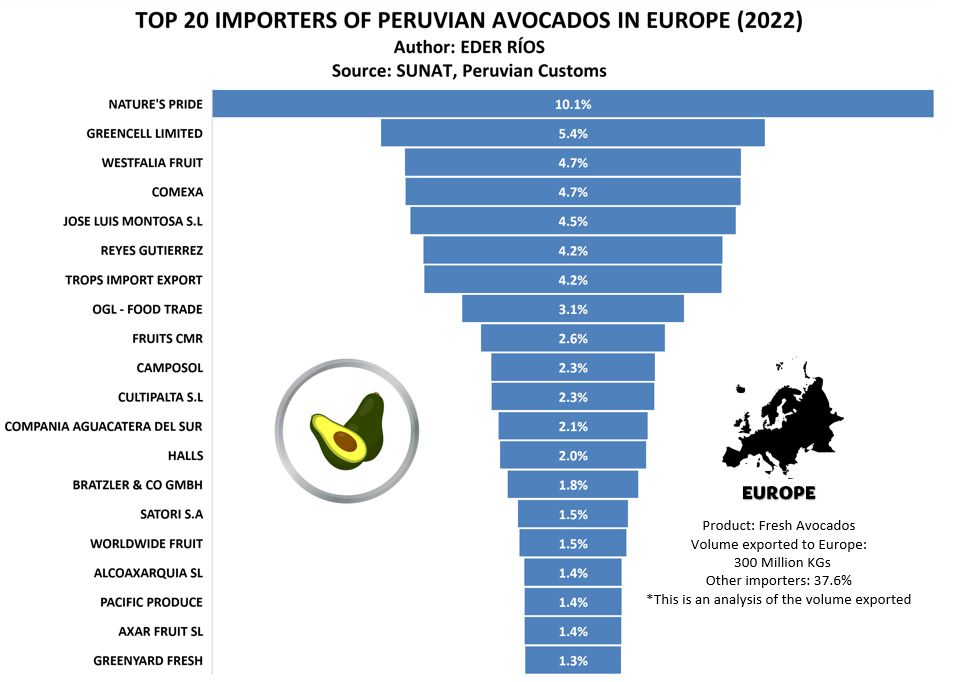 El ranking de importadores de palta peruana desde Europa en 2022 quedó de la siguiente manera:
