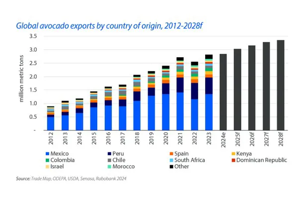 "Las oportunidades abundan en Asia y América Latina, donde hay mercados sin explotar preparados para el crecimiento. Los países sudamericanos, en particular, están preparados para un mayor consumo, a la espera de iniciativas promocionales y de marketing", dice David Magaña, analista sénior de frutas y hortalizas. Las importaciones de Asia se incrementaron un 29% interanual en 2023, con China a la cabeza.