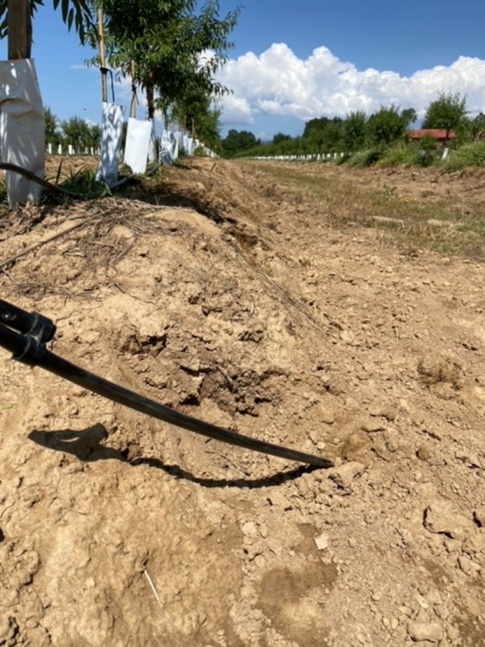 Al igual que los sistemas de riego, los almendros tienen una vida útil prolongada (alrededor de 25 años), con un sistema radicular vivo y raíces pivotantes profundas. Se sabe que el riego enterrado ahorra agua, tiempo y eficiencia en los huertos (como, por ejemplo, durante la cosecha), pero uno de los desafíos siempre ha sido cómo lidiar con la posible intrusión de raíces. Las raíces de los árboles naturalmente se dirigen hacia el lateral de goteo en busca de agua y pueden bloquear los emisores de riego enterrados, provocando una falta de uniformidad en la aplicación y un crecimiento irregular de los árboles.